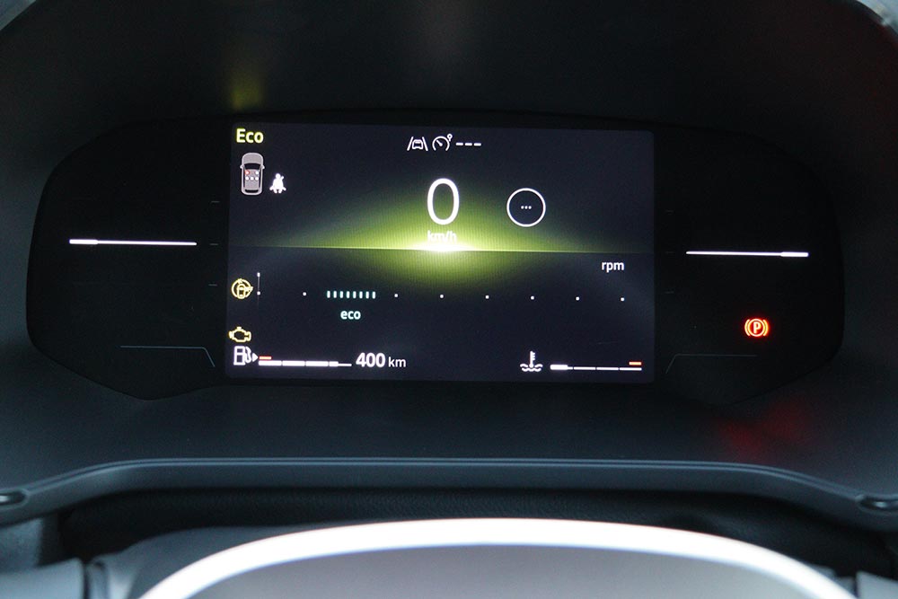 Το αρχικό στην γκάμα Captur ECO-G 100 evolution διαθέτει στον εξοπλισμό του όλα τα σύγχρονα καλούδια: οθόνη πολυμέσων 10,4 ιντσών, ψηφιακό πίνακα οργάνων 7 ιντσών, κάμερα οπισθοπορείας, πίσω αισθητήρες παρκαρίσματος, air condition, αυτόματο φρενάρισμα, υποβοήθηση διατήρησης λωρίδας, 6 αερόσακους, αναγνώριση πινακίδων οδικής κυκλοφορίας, αισθητήρα φώτων, αυτόματη εναλλαγή μεγάλης/μεσαίας σκάλας φώτων, κεντρική κονσόλα και υποβραχιόνιο με αποθηκευτικό χώρο και συρόμενο πίσω κάθισμα. Το τελευταίο σύρεται κατά 16 χιλιοστά και με μια απλή κίνηση η χωρητικότητα του ήδη μεγάλου πορτ μπαγκάζ των 484 λίτρων αυξάνεται στα 616 λίτρα. Με το κάθισμα στην πιο πίσω θέση, οι επιβάτες έχουν στη διάθεσή τους πολύ αέρα για τα πόδια, ενώ συνολικά το εσωτερικό του είναι πολύ ευρύχωρο. Επίσης διακρίνεται για την πολύ καλή ποιότητα κατασκευής, χαρακτηριστικό που συμβάλλουν τα μαλακά υλικά που καλύπτουν ένα μεγάλο μέρος του ταμπλό και της κονσόλας.