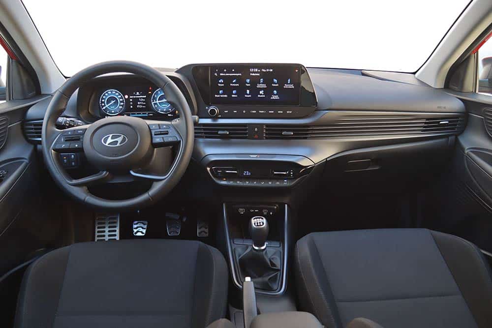 Στα συστήματα πολυμέσων και συνδεσιμότητας ανήκουν ο ψηφιακός πίνακας οργάνων με οθόνη 4,2 ιντσών στο 1.2 MPI και 10,25 ιντσών στο 1.0 T-GDI, η οθόνη αφής 10,25 ιντσών, το σύστημα πλοήγησης, η κάμερα οπισθοπορείας και το Hyundai BlueLink για έλεγχο διαφόρων λειτουργιών του αυτοκινήτου εξ αποστάσεως μέσω του smartphone. Στον εξοπλισμό ανήκουν ακόμα όλες οι ηλεκτρικές ευκολίες, air condition, αισθητήρες παρκαρίσματος πίσω, Drive Mode Select (στο 1.0 T-GDI), δερμάτινη επένδυση τιμονιού και επιλογέα ταχυτήτων κ.λπ. Μαζί με αυτά ο πελάτης έχει επιπλέον όφελος από την εργοστασιακή 5ετή εγγύηση χωρίς όριο χιλιομέτρων.