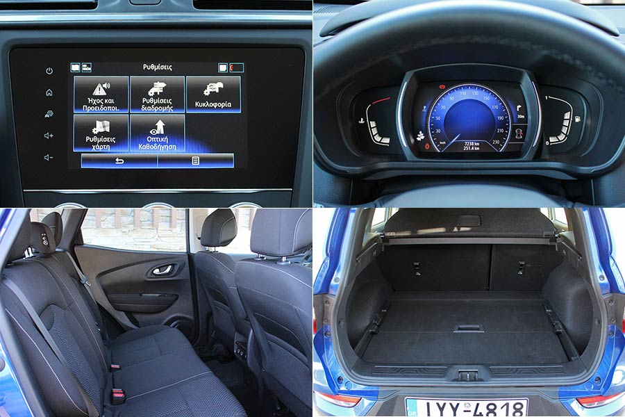 Στα σημαντικά του πλεονεκτήματα ανήκουν και οι χώροι. Πέντε επιβάτες βολεύονται άνετα τόσο σε πλάτος, όσο και σε χώρο ποδιών/κεφαλιού, ενώ αναλόγως μεγάλο είναι και το πορτμπαγκάζ, με τα 527 λίτρα. Στον τομέα της ποιότητας, το Kadjar είναι προσεγμένο τόσο σε επίπεδο υλικών (παχύ αφρώδες υλικό σε όλο το ταμπλό), όσο και σε συναρμογή και φινίρισμα.