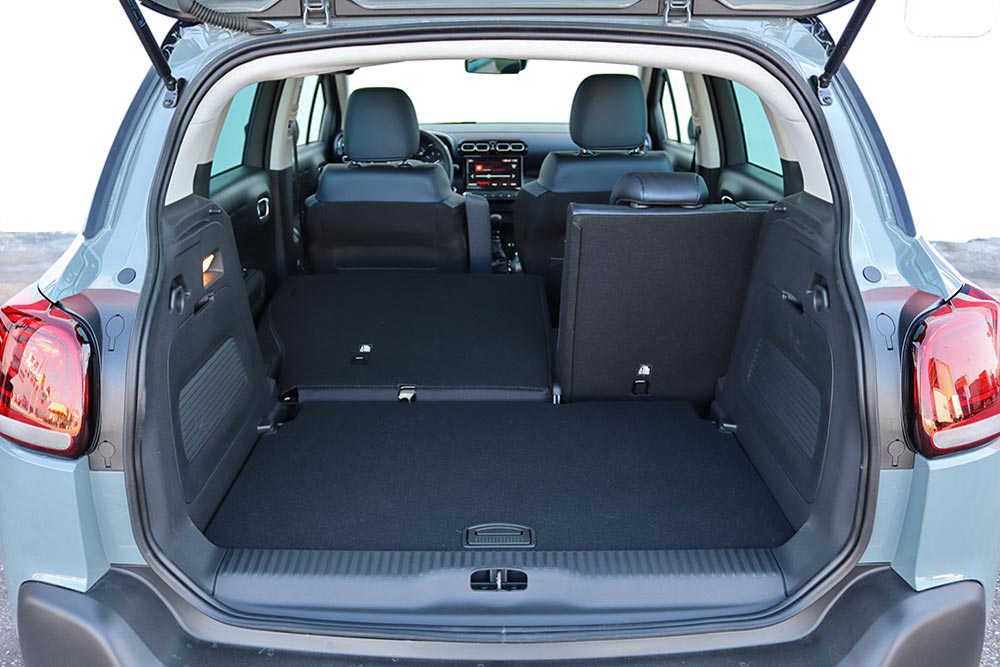 Μοντέρνα είναι η εικόνα και στο εσωτερικό του, όπου και εδώ οι πολλές καμπύλες επιφάνειες χαρακτηρίζουν τον σχεδιασμό. Στο κέντρο του ταμπλό με τη γεροδεμένη κατασκευή κυριαρχεί η οθόνη αφής των 7 ιντσών (ή 9 ιντσών στις πιο ακριβές εκδόσεις) και τα ελάχιστα χειριστήρια στην κονσόλα. Το νέο C3 Aircross παρέχει υψηλό επίπεδο άνεσης σε όλους τους φιλοξενούμενούς του, χάρη στα νέα καθίσματα τεχνολογίας Citroen Advanced Comfort. Αυτά έχουν παχιά γέμιση και αγκαλιάζουν το σώμα, γεγονός που εκτιμάται αμέσως και απολαμβάνεται, από την πιο κοντινή διαδρομή, έως τα μακρινά ταξίδια. Τις ανέσεις ενισχύουν με τη σειρά τους και οι χώροι, αφού και οι πιο ψηλοί δεν θα χρειαστεί να κάνουν παραχωρήσεις. Την πρακτικότητα απογειώνει και το συρόμενο πίσω κάθισμα, διαμορφώνοντας ανάλογα τη χωρητικότητα που πορτ μπαγκάζ μεταξύ 410-520 λίτρων.
