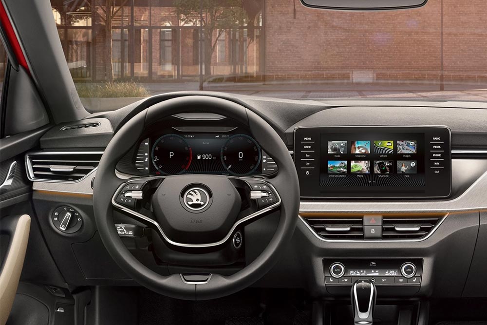 Πολύ καλή είναι συνολικά η εικόνα στο εσωτερικό του Skoda Kamiq, αφού είναι προσεγμένο σε όλα του και δεν αφήνει περιθώρια για παράπονα. Καταρχήν, τις πρώτες εντυπώσεις κερδίζει με την ποιότητά του, μέσω της χρήσης μαλακού πλαστικού σε ολόκληρο το ταμπλό, το οποίο με τη σειρά του είναι στιβαρά κατασκευασμένο και ενισχύει την συμπαγή αίσθηση που αποπνέει το αυτοκίνητο. Στο κέντρο κυριαρχεί η εύχρηστη, κομψή και με σύγχρονα γραφικά οθόνη των 8 ιντσών του infotainment, που συμπληρώνει ο μοντέρνος και παραμετροποιήσιμος ψηφιακός πίνακα οργάνων Virtual Cockpit των 10,25 ιντσών.