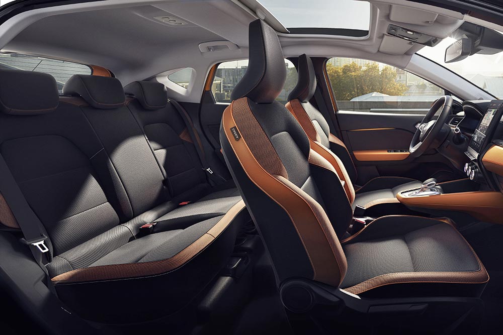 Το πολύ όμορφο και κομψό Renault Captur με το κόμπακτ σε διαστάσεις αμάξωμα των 4.227 χιλιοστών μήκους, είναι σε θέση να καλύψει με μεγάλη ευκολία τις μεταφορικές απαιτήσεις μιας τετραμελούς οικογένειας. Στο πίσω κάθισμα υπάρχει πολύς αέρας για τα πόδια και το κεφάλι, όπως και αρκετό ωφέλιμο πλάτος για έναν μεσαίο επιβάτη. Εξαιρετικά πρακτικό και χρήσιμο είναι το συρόμενο πίσω κάθισμα σε μια διαδρομή 16 εκατοστών. Ο χώρος αποσκευών είναι ούτως ή άλλος μεγάλος στα 422 λίτρα, όμως σε δευτερόλεπτα αυξάνεται στα 536 λίτρα. Παράλληλα, το εσωτερικό του Captur διακρίνεται για την πολύ καλή ποιότητα, η οποία αναβαθμίζεται σημαντικά από τη χρήση μαλακών υλικών στο ταμπλό και σε πολλές επιμέρους επιφάνειες.
