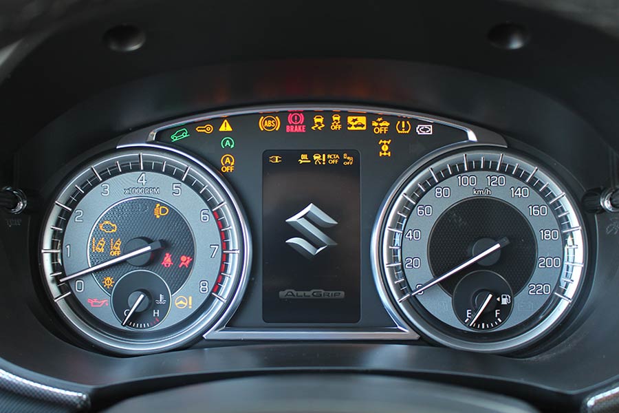 Η στιβαρότητα της κατασκευής του, γίνεται αντιληπτή και στο εσωτερικό του. Το ταμπλό με το μαλακό πλαστικό στο πάνω μέρος, η κεντρική κονσόλα, τα σκληρά πλαστικά και τα επιμέρους τμήματα εμφανίζουν στο σύνολό τους γεροδεμένη συναρμογή. Παράλληλα ο οδηγός κάθεται βολικά στο αναπαυτικό κάθισμα και απολαμβάνει απρόσκοπτη περιμετρική ορατότητα. Το ίδιο ισχύει και για τους υπόλοιπους επιβάτες, με εκείνους στο πίσω κάθισμα να έχουν στη διάθεσή τους επαρκή χώρο για τα πόδια και μπόλικο ύψος. Αρκετά ικανοποιητικό είναι και το πορτ μπαγκάζ των 362 λίτρων, το οποίο φαίνεται πιο μεγάλο από το νούμερο που ανακοινώνει η Suzuki.