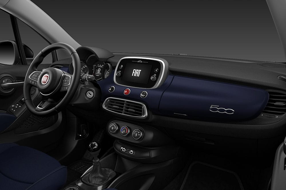 Η απάντηση είναι στο στιλάτο Fiat 500X στην έκδοση 1.6 Multijet Club, συνοδευόμενο με τον εξής στάνταρ εξοπλισμό: 6 αερόσακους, υποβοήθηση διατήρησης λωρίδας, οθόνη αφής 7 ιντσών, air condition, ηλεκτρικά παράθυρα και καθρέπτες, προβολείς ομίχλης, δερμάτινο τιμόνι και ζάντες αλουμινίου 16 ιντσών.