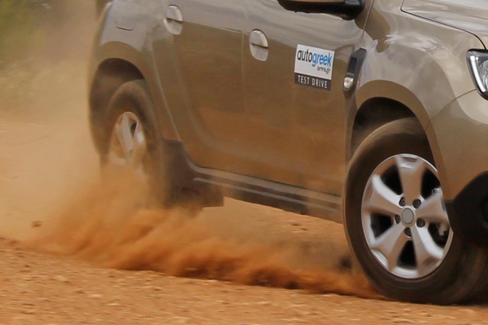 Η ανάρτηση διαθέτει ιδανική ρύθμιση για τους γεμάτους ανωμαλίες ελληνικούς δρόμους, αφού περνά πάνω από λακκούβες, μπαλώματα και λοιπές κακοτεχνίες δίχως οι επιβάτες να το αντιλαμβάνονται. Με το πολύ ελαφρύ τιμόνι υπό γωνία, το Duster θα πάρει λογικές κλίσεις, πάντα ελεγχόμενα και με την υποστροφή σε πρώτο πλάνο όταν ξεπεραστεί το όριο της πρόσφυσης.