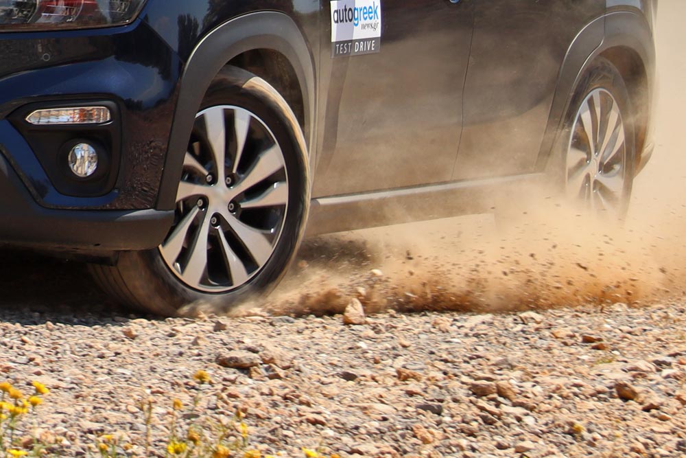 Στο κομμάτι της οδικής συμπεριφοράς, το τετρακίνητο S-Cross, είναι όπως ακριβώς το θέλει ο οδηγός ενός τέτοιου αυτοκινήτου. Δηλαδή να είναι άνετο, εύκολο στους χειρισμούς και να πατάει εύκολα και εκεί που τελειώνει η άσφαλτος. Οι αναρτήσεις καταφέρνουν και ισοπεδώνουν τα κακοτράχαλα τερέν, σε εντυπωσιακό βαθμό και παρά την ύπαρξη ημιάκαμπτου πίσω άξονα. Το AllGrip είναι ένα σύστημα αυτόματης τετρακίνησης, αποτελούμενο από κεντρικό ηλεκτρομαγνητικό συμπλέκτη και με τέσσερις κατ’ επιλογήν λειτουργίες, μέσω ενός περιστροφικού διακόπτη. Στο Auto στέλνει ροπή στον πίσω άξονα μόνο όταν χρειάζεται, στο Sport η απόκριση του γκαζιού γίνεται πιο άμεση και μεταφέρεται περισσότερη ροπή πίσω, το Snow είναι για όλες τις ολισθηρές επιφάνειες και το Lock κατανέμει τη μέγιστη ροπή στους πίσω τροχούς.
