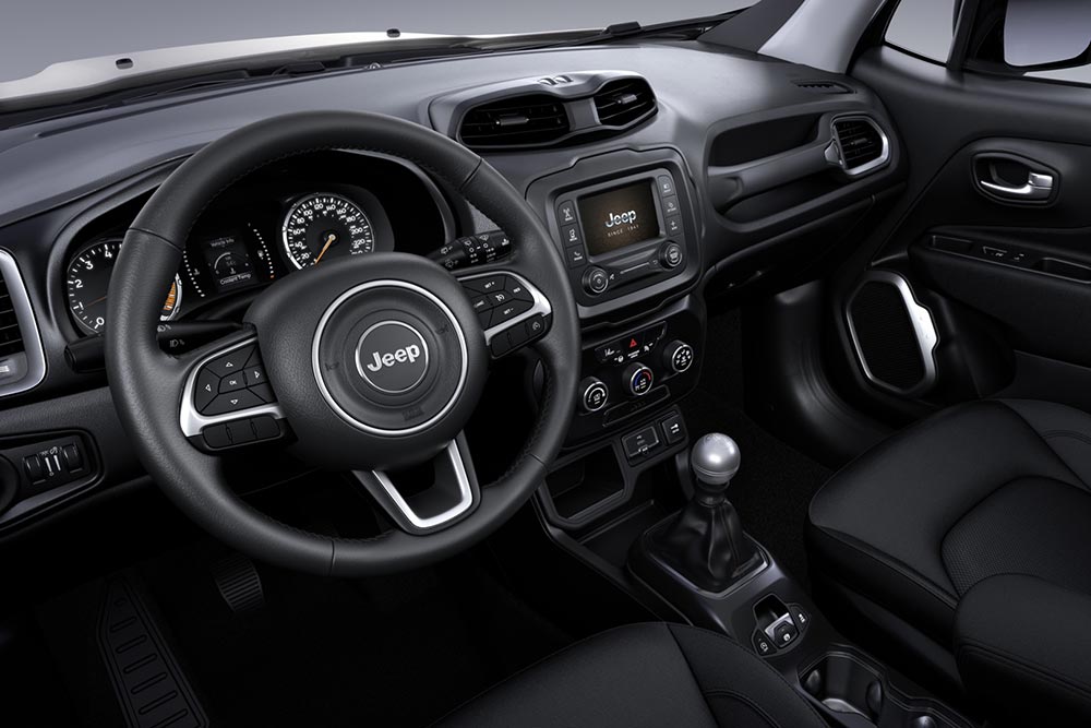 Τα γεωμετρικά σχήματα κυριαρχούν και στο εσωτερικό του Renegade, όπως και η χειρολαβή στη δεξιά πλευρά του ταμπλό. Το τελευταίο είναι κατασκευασμένο στο μεγαλύτερο μέρος του από μαλακό πλαστικό, με το φινίρισμα και τη συναρμογή να ικανοποιούν. Ο οδηγός κάθεται ψηλά και θα βρει εύκολα τη θέση που τον βολεύει, ενώ θα εκτιμήσει την απρόσκοπτη περιμετρική ορατότητα. Εξίσου άνετα θα μετακινηθούν κι οι υπόλοιποι επιβάτες, οι οποίοι έχουν στη διάθεσή τους ένα πλήρως εκμεταλλεύσιμο πορτ μπαγκάζ 351 λίτρων.