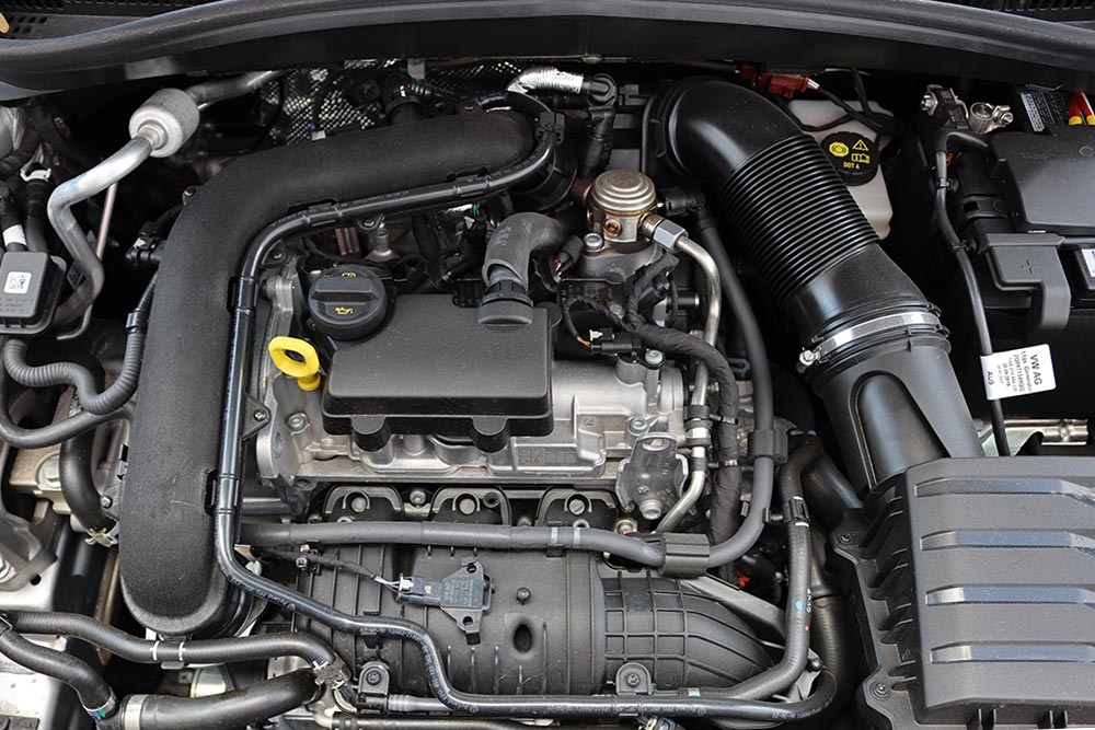Ο γνωστός και αποδοτικός κινητήρας 1.0 TSI των 95 ίππων και με τη ροπή των 175 Nm από τις μόλις 1.600 σ.α.λ. συνδυάζεται με 5άρι χειροκίνητο κιβώτιο και ικανοποιεί με τα συνολικά του χαρακτηριστικά. Το 3κύλινδρο turbo μοτέρ με τη ραφιναρισμένη και δίχως ενοχλητικούς θορύβους λειτουργία εμφανίζει θετικό τράβηγμα από τις χαμηλές έως τις μεσαίες στροφές. Προσφέρει επιτάχυνση στο 0-100 χλμ./ώρα σε 11,6 δλ. και μέγιστη ταχύτητα 180 χλμ./ώρα, με μεικτή (εργοστασιακή) κατανάλωση 5,8 λτ./100 χλμ. και εκπομπές CO2 131 γρ./χλμ. (84 ευρώ τέλη κυκλοφορίας).