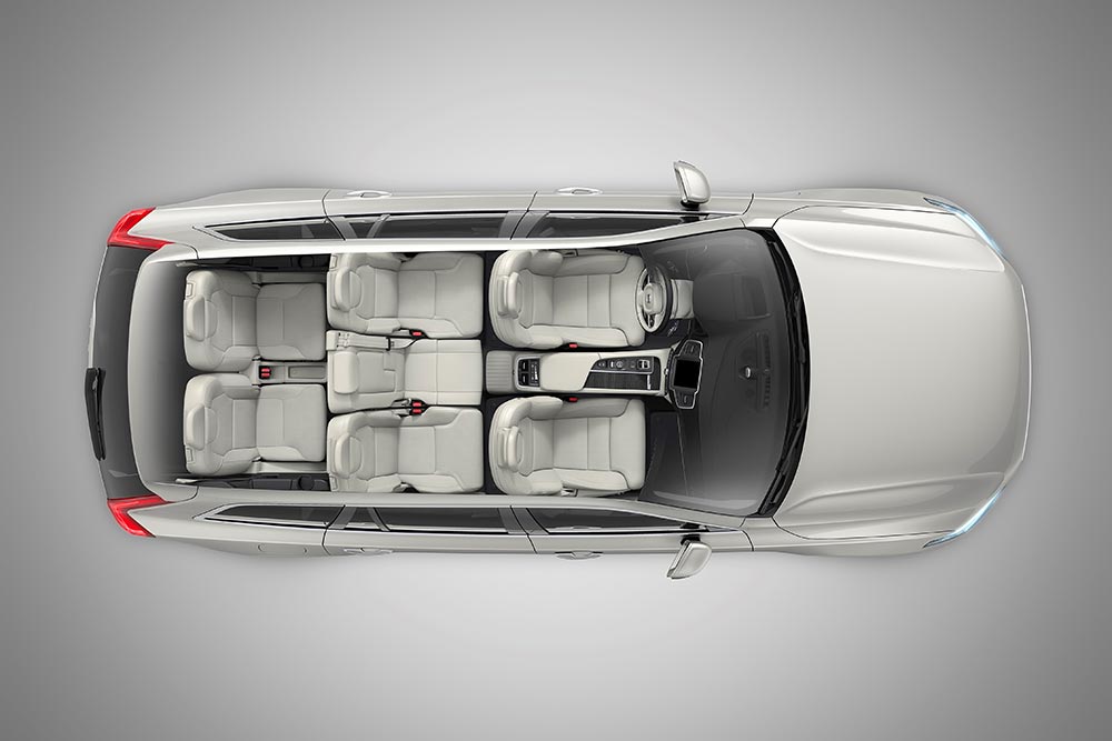 Από πλευράς χώρων, στο εσωτερικό του XC90 θα μετακινηθούν με άνεση έως και 7 ενήλικοι επιβάτες. Η δεύτερη σειρά καθισμάτων έχει τρία ανεξάρτητα καθίσματα με ρυθμιζόμενη κλίση, στα οποία τρία άτομα θα φιλοξενηθούν χωρίς καμία παραχώρηση. Τα δύο καθίσματα της τρίτης σειράς που είναι διπλωμένα στο δάπεδο σηκώνονται εύκολα και μεταφέρουν χωρίς πρόβλημα επιβάτες με ύψος έως περίπου 1,7 μ. Μεγάλος είναι και ο χώρος αποσκευών με χωρητικότητα 692 λτ. στη 5θέσια διάταξη ή με 314 λτ. στην 7θέσια.