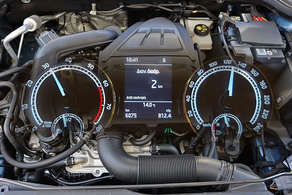 Επιπλέον, το εσωτερικό του Kamiq διακρίνεται για την προσεγμένη του ποιότητα. Αυτή ενισχύεται από το μαλακό υλικό που καλύπτει ολόκληρο το πάνω μέρος του ταμπλό, την πολύ καλή συναρμογή και το φινίρισμα. Ο οδηγός θα βολευτεί γρήγορα και θα εκτιμήσει τις πολλές θήκες για μικροπράγματα. Στα πολύ θετικά γνωρίσματα ανήκει και η ευρυχωρία της καμπίνας του, αφού στο πίσω κάθισμα ακόμα και οι πιο ψηλοί δεν θα στριμωχτούν. Μόνο το πορτ μπαγκάζ μειώθηκε στα 278 λίτρα (έναντι 400 λτ. το βενζίνης), λόγω των απολύτως καλυμμένων και ασφαλών δεξαμενών, που βρίσκονται κάτω από το δάπεδο.