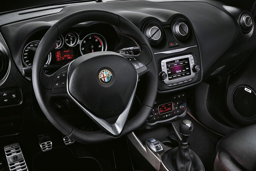 Στο εσωτερικό της νέας MiTo Racer συνδυάζονται γκρι υφάσματα στα καθίσματα με καφέ οικολογικό δέρμα στις πόρτες και λογότυπα Alfa Romeo στα προσκέφαλα των εμπρός θέσεων. Δερμάτινη επένδυση με καφέ ραφές διαθέτει επίσης το τιμόνι, ο επιλογέας των ταχυτήτων και το χειρόφρενο.