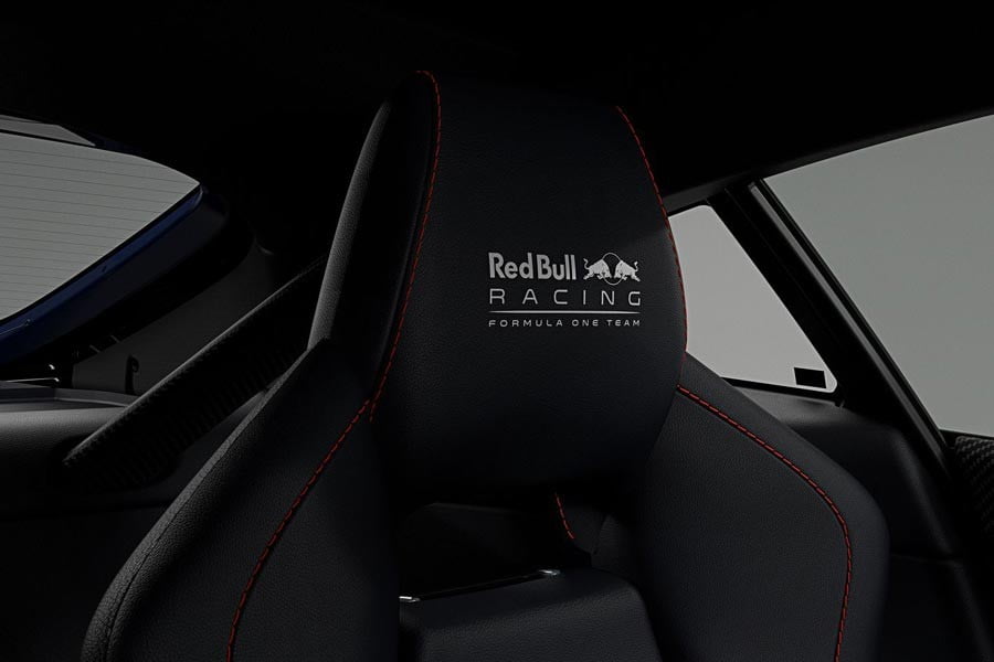 Προχωρώντας στο εσωτερικό, η νέα special έκδοση για τις Aston Martin V8 και V12 Vantage ξεχωρίζει με νέα στοιχεία όπως το τιμόνι από αλκαντάρα, οι επενδύσεις από ανθρακονήματα, αλλά και τα προσκέφαλα στα καθίσματα που αναγράφουν «Red Bull Racing».