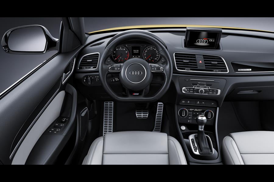 Στο εσωτερικό του Audi Q3 Sline competition υπάρχουν σπορ καθίσματα επενδυμένα με μαύρο δέρμα και ύφασμα με λογότυπα S line, ή προαιρετικά με αλκαντάρα και δέρμα νάππα. Τον σπορτίφ χαρακτήρα του ενισχύουν ακόμα τα διακοσμητικά μαύρης λάκας πιάνου, σε συνδυασμό με πεντάλ και υποπόδιο από ανοξείδωτο ατσάλι με το κιβώτιο ταχυτήτων S tronic. Στα μοντέλα με το μηχανικό κιβώτιο υπάρχει επιλογέας ταχυτήτων από αλουμίνιο και δέρμα. Επίσης, το flat-bottomed, πολλαπλών λειτουργιών τιμόνι των 3 ακτινών διαθέτει λογότυπο S line και ραφές σε αντίθετη απόχρωση.