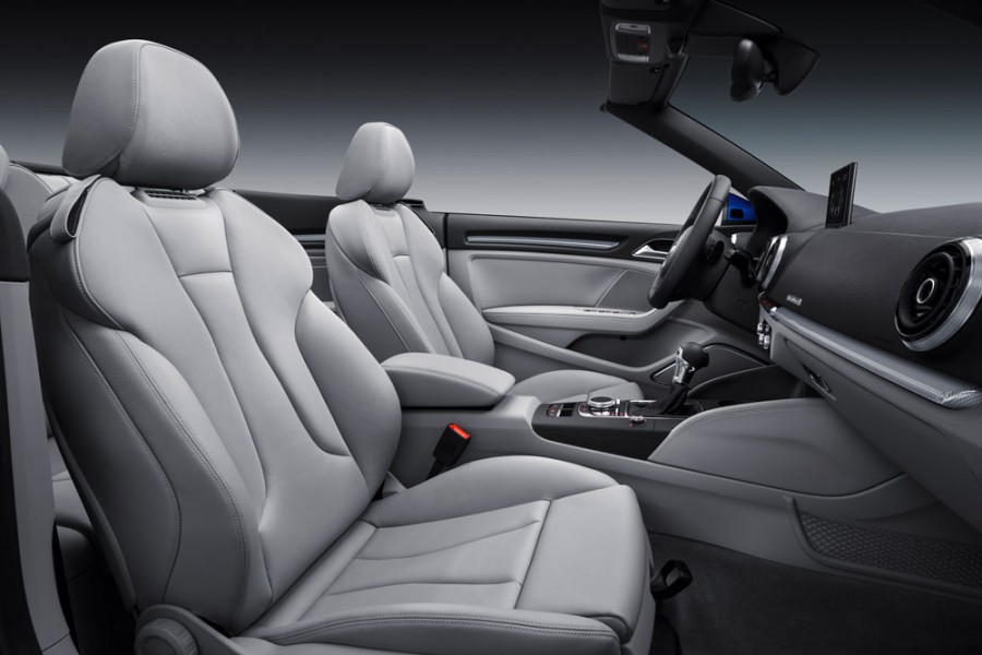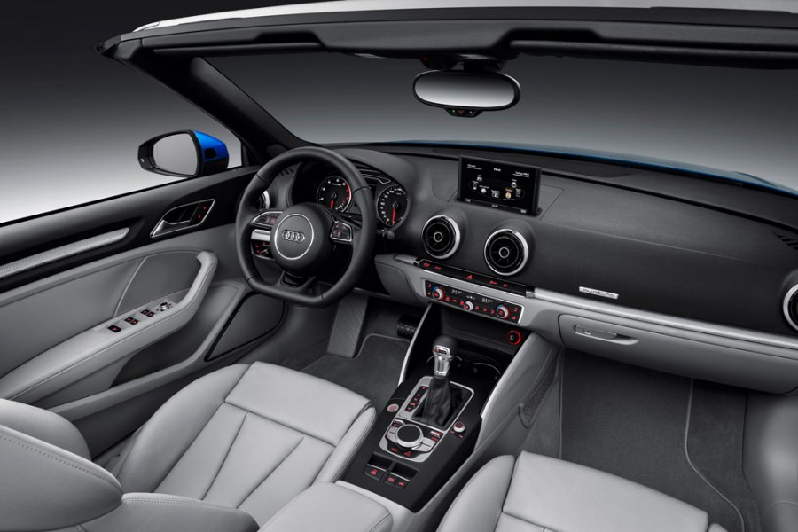 Η Audi αποκαλύπτει επίσημα το νέο A3 Cabriolet, το οποίο είναι σχεδόν ίδιο με αυτό που σας είχαμε δείξει πριν από δύο μέρες, μέσω των ηλεκτρονικά επεξεργασμένων φωτογραφιών (δείτε εδώ). Έτσι εξωτερικά και στο εσωτερικό θυμίζει έντονα το Audi A3 Sedan, ενώ όσον αφορά στις διαστάσεις του έχει μεγαλώσει σημαντικά κυρίως σε μήκος σε σχέση με το απερχόμενο μοντέλο. Πιο συγκεκριμένα το νέο Audi A3 Cabriolet μετρά 4,42 μ. μήκος από 4,24, 1,79 μ. πλάτος από 1,77 μ., 2,60 μ. μεταξόνιο από 2,58 μ. και 1,41 μ. ύψος, πιο χαμηλό κατά 15 χλστ. Με την αύξηση του μήκους και μεταξονίου ωφελήθηκαν οι χώροι τόσο για τους επιβάτες όσο και για τις αποσκευές (320 λίτρα από 260 και 287 λτ. με την οροφή ανοιχτή.).