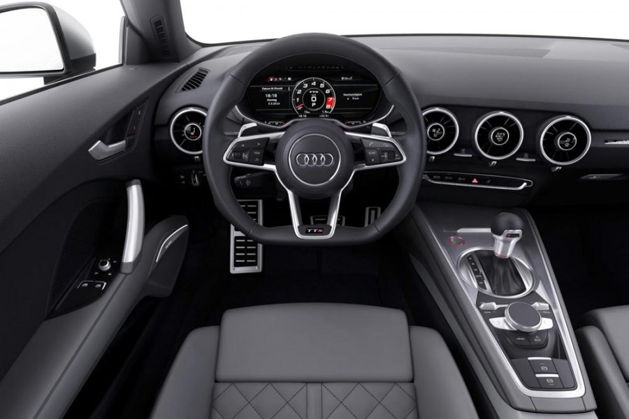 Το εσωτερικό του νέου TT είναι όμορφο, ποιοτικό και ιδιαίτερα σύγχρονο σχεδιαστικά με μινιμάλ αισθητική. Οι στρογγυλοί αεραγωγοί του συστήματος ψύξης – θέρμανσης αποτελούν και σε αυτό το TT τα βασικά χαρακτηριστικά της σχεδίασης, στο κέντρο των οποίων ωστόσο βρίσκονται και τα χειριστήρια λειτουργίας του. Έτσι η κεντρική κονσόλα είναι πιο λιτή περιλαμβάνοντας μεταξύ άλλων και το χειριστήριο MMI. Όσον αφορά στους χώρους, το TT ως παραδοσιακό 2+2 θέσεων κουπέ αυτοκίνητο αναμένεται να περιορίζει τις μετακινήσεις 2 ενήλικων ατόμων στο πίσω κάθισμα με το χώρο αποσκευών να έχει όγκο 305 λίτρων (+18 λίτρα έναντι του προηγούμενου TT).