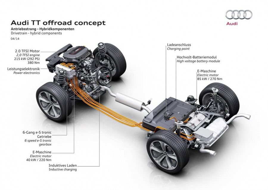 Το νέο Audi TT offroad concept είναι επίσημο και δεν πρόκειται για κάποιο… ξεχασμένο Πρωταπριλιάτικο αστείο, αλλά για ένα πρωτότυπο που δείχνει μελλοντικό αυτοκίνητο παραγωγής. Το TT offroad concept συνδυάζει τα κουπέ στοιχεία του νέου TT με δύο επιπλέον πόρτες και αυξημένη απόσταση του αμαξώματος από το έδαφος, ενώ εφοδιάζεται με υβριδικό σύνολο συνδυαστικής ισχύος 408 ίππων και 650 Nm ροπής.