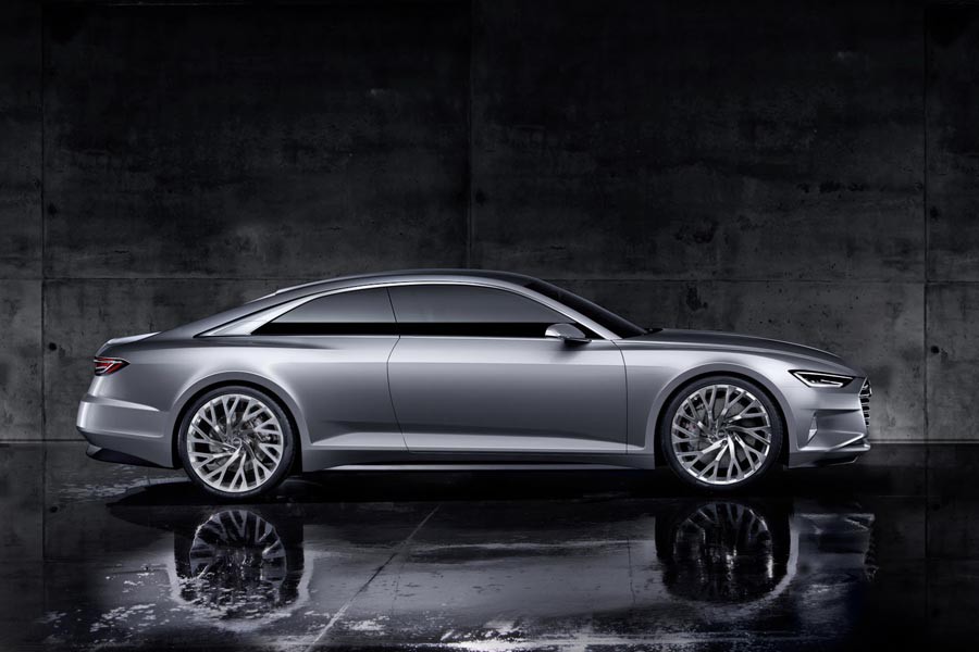 Τη νέα σχεδιαστική της φιλοσοφία αποκαλύπτει η Audi μέσω του εντυπωσιακού πρωτότυπου μεγάλου κουπέ μοντέλου Prologue, το οποίο παράλληλα προαναγγέλλει το μελλοντικό αντίπαλο της Mercedes S-Class Coupe. Το πολύ δυναμικό, κομψό σχεδιαστικά και με χυτές γραμμές αμάξωμα του Audi Prologue έχει μήκος 5.100 χλστ., πλάτος 1.950 χλστ., ύψος 1.390 χλστ. και μεταξόνιο 2.940 χλστ. Μεγάλοι είναι και οι τροχοί αλουμινίου με διάμετρο 22 ιντσών και ελαστικά διαστάσεων 285/30.