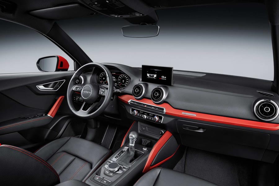 Το εσωτερικό ακολουθεί τα γνώριμα πρότυπα της Audi με το μινιμάλ σχεδιασμό, τα λίγα χειριστήρια, τους στρογγυλούς αεραγωγούς και το σπορτίφ τιμόνι. Την υψηλή τεχνολογία του αναδεικνύουν ο εικονικής πραγματικότητας πίνακας οργάνων, το head-up display και το στάνταρ σύστημα πολυμέσων MMI. Παρά τις κόμπακτ εξωτερικές του διαστάσεις, το Audi Q2 προσφέρει μεγάλο χώρο αποσκευών 405 λίτρων.