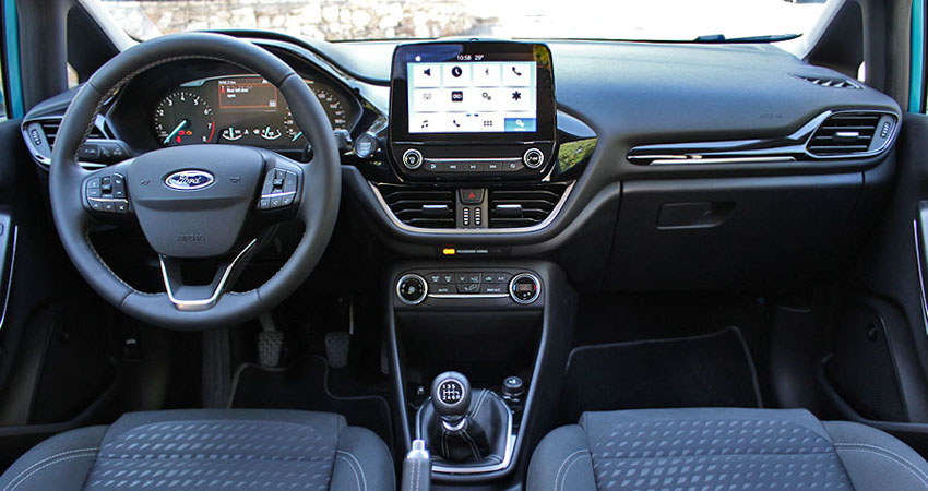 Αισθητά βελτιωμένο και εκσυγχρονισμένο είναι και το εσωτερικό του νέου Fiesta, όπου κυριαρχεί η μεγάλη οθόνη αφής 8,0 ιντσών στο κέντρο του ταμπλό. Προσεγμένη είναι με την σειρά της η ποιότητα κατασκευής, όπως και η εργονομία των διαφόρων χειριστηρίων. Βελτιωμένο παρουσιάζεται και σε χώρους το νέο Fiesta, με τους καλούς χώρους για δύο επιβάτες στο πίσω κάθισμα και το πορτ μπαγκάζ των 303 λίτρων.