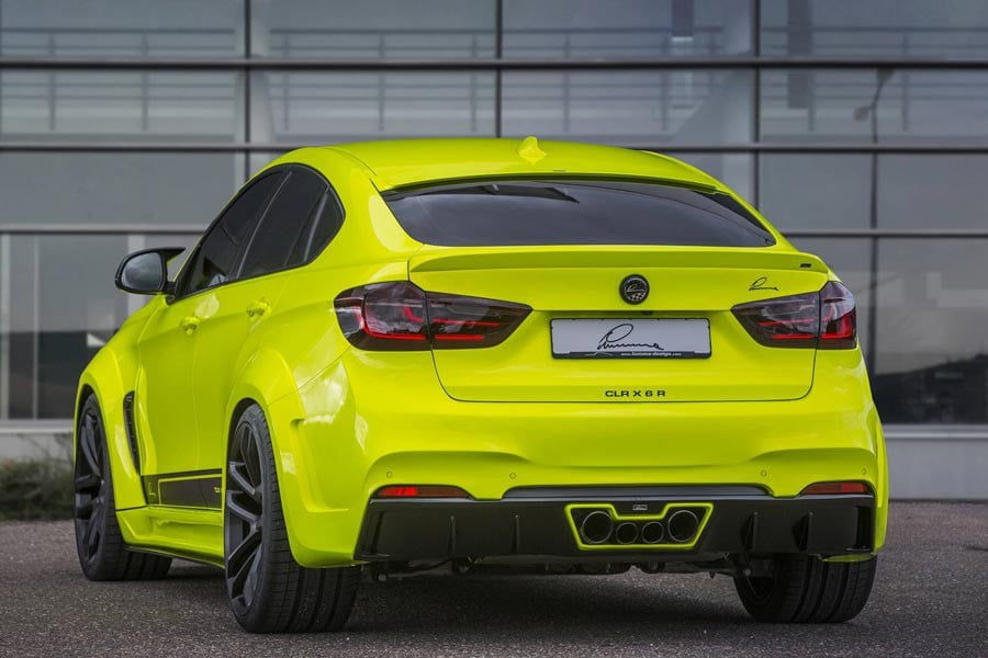Η γερμανική Lumma Design είναι σε θέση να κάνει τη «μετάλλαξη» του σπορ SUV, τόσο στο αμάξωμα, όσο και στο εσωτερικό. Εξωτερικά η αναβαθμισμένη X6 Μ διαθέτει ένα πλήρες body kit με διάφορα αεροδυναμικά βοηθήματα περιμετρικά του αμαξώματος, τα οποία είναι κατασκευασμένα από ανθρακόνημα. Παράλληλα, οι προσθήκες στα φτερά έχουν αυξήσει το πλάτος του αυτοκινήτου κατά 40 χιλιοστά.