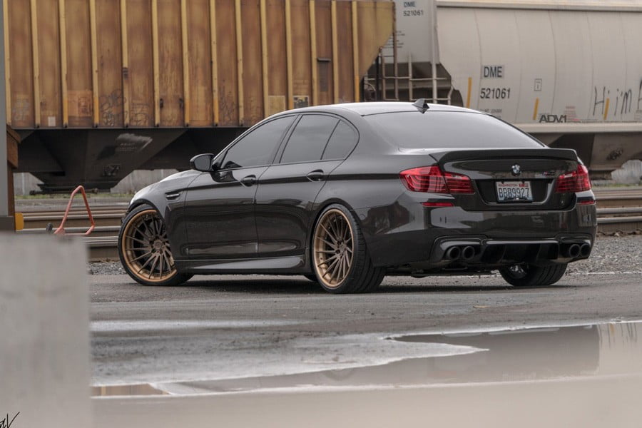 Εδώ βλέπουμε την BMW M5 F10 σε ανθρακί χρώμα με ζάντες 21 ιντσών της ADV.1 οι οποίες κοστίζουν περίπου 7.500 ευρώ. Φυσικά το αυτοκίνητο συνοδεύεται από ανάρτηση, η οποία το κρατά πιο χαμηλά στο έδαφος και αεροδυναμικά βοηθήματα από ανθρακονήματα. Εμπρός έχει σπόιλερ και πίσω αεροτομή και αεροδυναμικό διαχύτη.