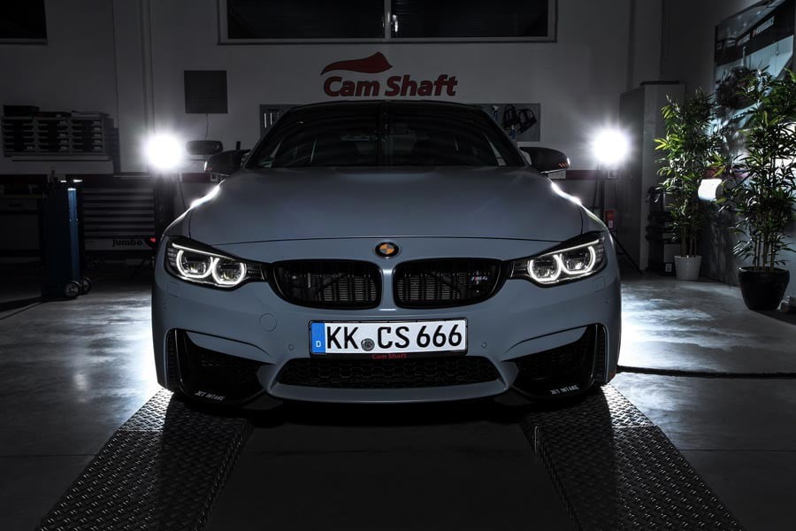 Πρώτα-πρώτα για τον 3λιτρο Twin Power Turbo 6κύλινδρο κινητήρα βενζίνης της BMW M4 η Cam-Shaft προσφέρει το πρώτο στάδιο βελτίωσης, που αυξάνει την ισχύ του στα 520 άλογα και τη ροπή στα 720 Nm (+170 Nm). Οι επιδόσεις, παρότι η εταιρεία δεν το ανακοινώνει, είναι αρκετά εκρηκτικές.
