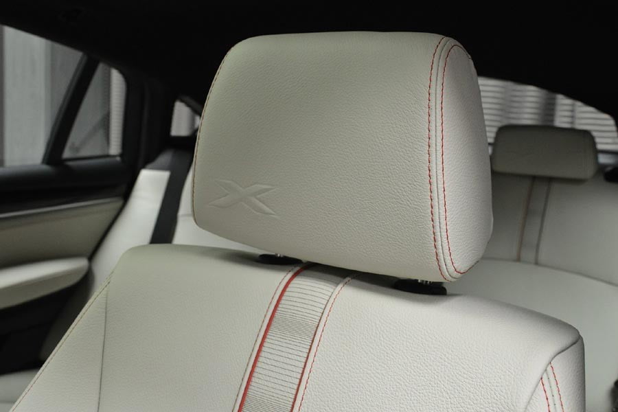Στο εσωτερικό της, η εν λόγω BMW X4 διαθέτει λευκό δερμάτινο σαλόνι με κόκκινες ραφές και στάμπα «Χ» στα προσκέφαλα που τονίζουν τον πολυτελή της χαρακτήρα, μεταλλικά σπορ πεντάλ, καθώς και ένα υπέρ-πλήρες πακέτο εξοπλισμού.
