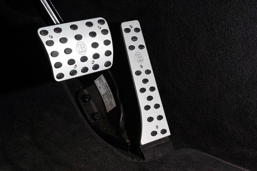 Στο εσωτερικό οι αλλαγές είναι μικρότερης έκτασης καθώς συναντάμε πεντάλ αλιυμινίου, μασπιέ με φωτιζόμενο το όνομα της Brabus και ειδικά πατάκια.
