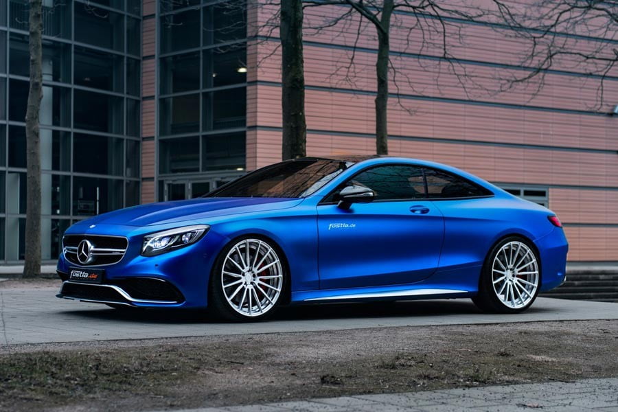 Στο πεδίο της εμφάνισης, η Fostla «ντύνει» το αμάξωμα με ένα πλήρες αυτοκόλλητο βινυλίου σε μπλε-ματ χρώμιο, το οποίο συνδυάζεται με σκουρόχρωμα φώτα και 22 ιντσών ζάντες της Prior Design, οι οποίες συνδυάζονται με ελαστικά μεγέθους 265/30 και 305/25 (εμπρός-πίσω). Η τελική πινελιά έρχεται από τη χαμηλωμένη ανάρτηση που φέρνει όσο το δυνατόν πιο κοντά στο έδαφος την S-Class Coupe.