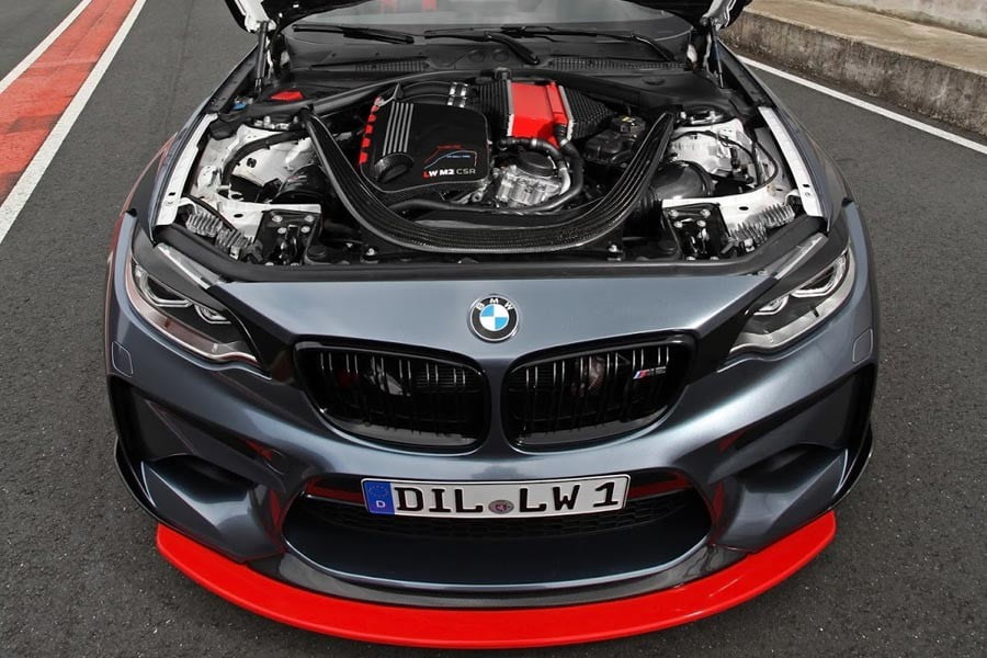 Αυτή τη φορά λοιπόν θα δούμε την BMW M2 CSR η οποία είναι βελτιωμένη από τον γερμανικό οίκο Lightweight Performanceο οποίος της έχει δώσει μια άλλη υπόσταση καθώς εκτός του ότι την γέμισε με ανθρακονήματα, τοποθέτησε και τον κινητήρα των M3/M4 (S55) κάτω από το καπό της. Ο βελτιωτικό οίκος ισχυρίζεται πως το συνολικό βάρος της BMW M2 CSR είναι στα 1.371 κιλά (μειωμένο κατά σχεδόν 200 κιλά), χάρη στην χρήση ανθρακονημάτων σε οροφή, καπό εμπρός και πίσω και πόρτες.