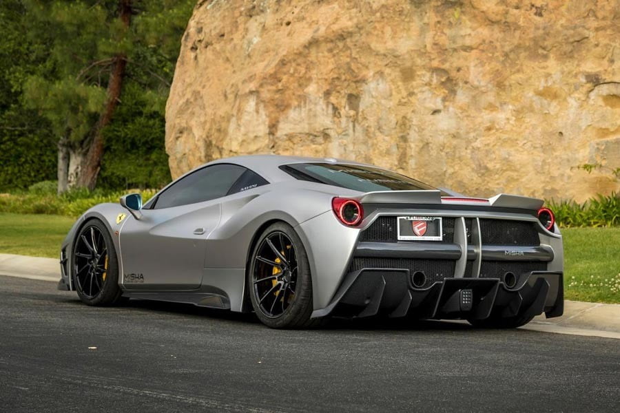 Εκτός από το παραπάνω bodykit, η Misha Designs τοποθετεί στην turbo Ferrari και νέας σχεδίασης ζάντες 20 ιντσών σε ματ γκρι και μαύρο χρώμα, ενώ παράλληλα βάφει το αμάξωμά της και σε μια ασημί ειδική απόχρωση, που τονίζει περαιτέρω την εμφάνισή της και ταιριάζει με τα νέα carbon τμήματα του bodykit.