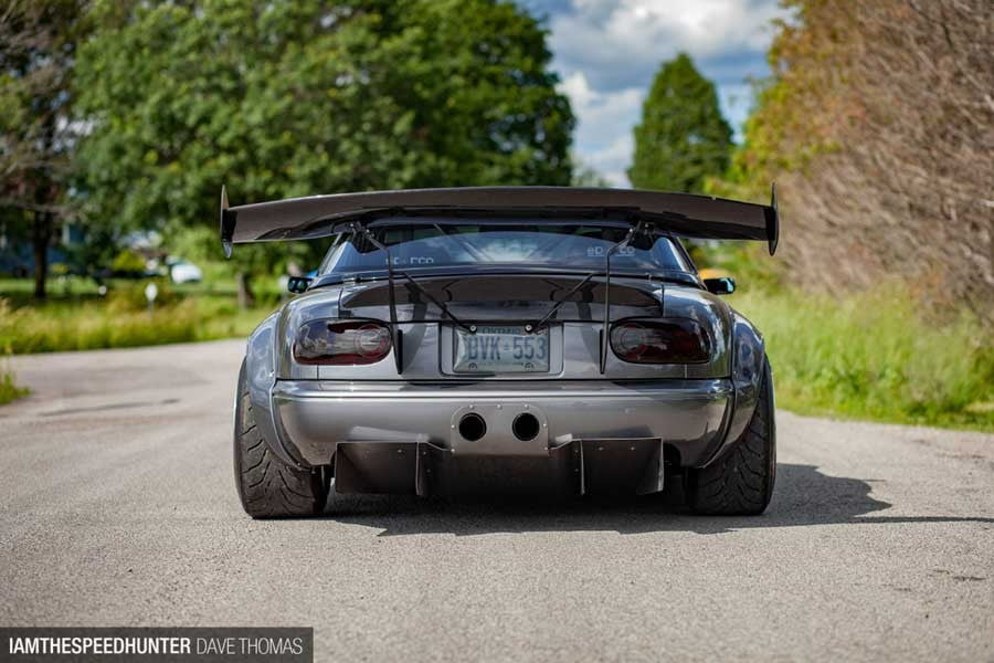 Το μοτέρ αποδίδει περίπου 500 ίππους και όπως μπορεί να γίνει εύκολα αντιληπτό έχουν αλλάξει τα πάντα στο Miata. Από διαφορικό και κιβώτιο μέχρι φρένα και ανάρτηση.