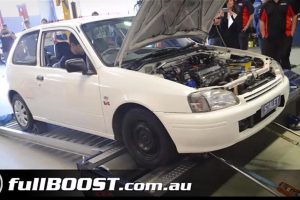 Σε ένα τελευταίας γενιάς Toyota Starlet του 1996 με κινητήρα 1.3 λίτρων, ο κάτοχός του αποφάσισε να το αναβαθμίσει χωρίς να του πειράξει καθόλου την εμφάνισή του εξωτερικά και στο εσωτερικό, παρά μόνο στον κινητήρα. Βέβαια μην φανταστείτε ότι έγινε μια απλή αναβάθμιση του 1.300άρη, αλλά τοποθετήθηκε ένας 1.5 λίτρων turbo me νίτρο και πολλές επιμέρους βελτιώσεις. Το αποτέλεσμα; 411,9 ίπποι στο δυναμόμετρο! Το Starlet… σίφουνας ακούγεται υπέροχα και είναι ταχύτατο, αφού καλύπτει τα 0-400 μέτρα σε περίπου 11 δευτερόλεπτα.