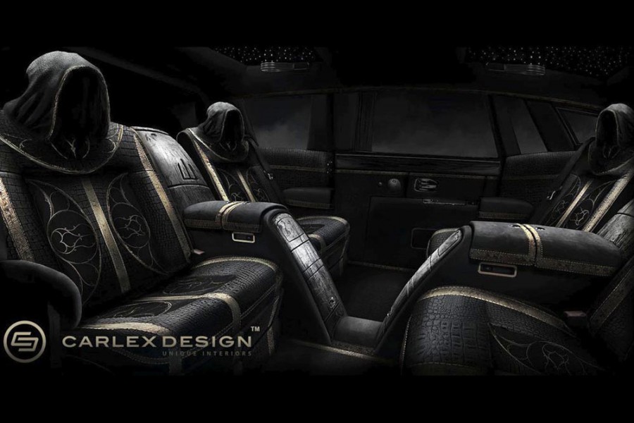 Μια άκρως εκκεντρική «μεταμόρφωση» ετοιμάζει η Carlex Design για το εσωτερικό της Rolls-Royce Phantom με την ονομασία «Abyss», το οποίο παραπέμπει σε ταινίες τρόμου και ειδικότερα στην Τρανσυλβανία και στο σπίτι του Κόμη Δράκουλα! Η κατάμαυρη μέσα – έξω Phantom προκαλεί φόβο και δέος στο εσωτερικό της με τις επενδύσεις που φέρνουν στο νου μάγους και φαντάσματα μέσω των σχεδίων στις επενδύσεις και ακόμα περισσότερο με τις κουκούλες που υπάρχουν στα προσκέφαλα. Προς το παρόν αυτό το ανατριχιαστικό δημιούργημα βρίσκεται σε 3D απεικονίσεις, έως ότου να βρεθεί κάποιος πελάτης με πολύ εξεζητημένα γούστα και να το παραγγείλει