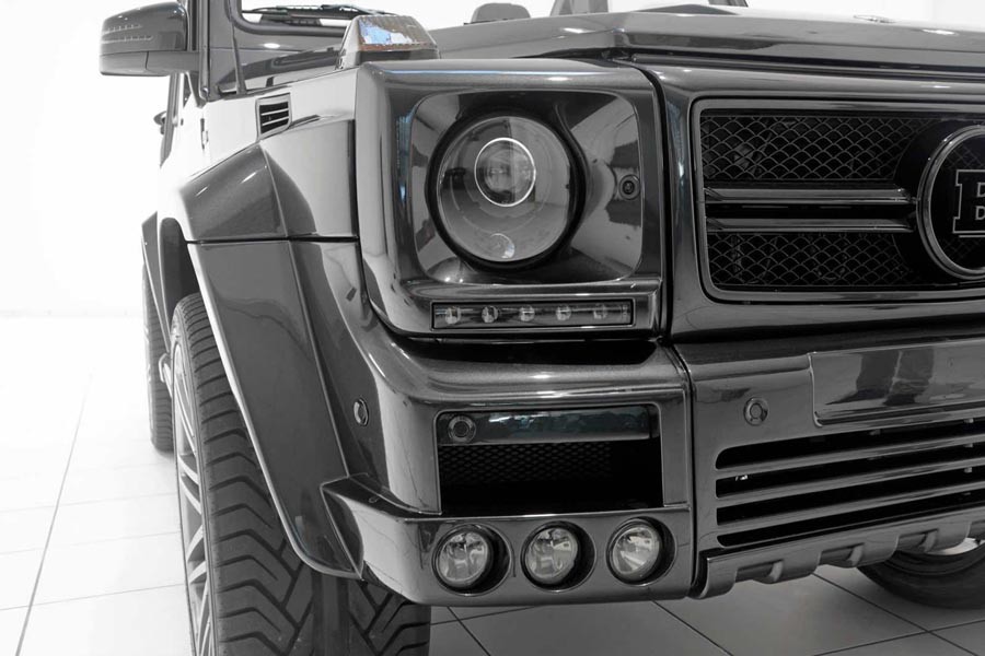 Ο Γερμανός βελτιωτής BRABUS παρουσιάζει τη νέα πρότασή του για το Mercedes G 500, το οποίο αναβαθμίζει τόσο αισθητικά όσο και μηχανικά χαρίζοντάς του πιο πολυτελή και σκληροτράχηλη εμφάνιση σε συνδυασμό με υψηλότερες επιδόσεις. Το κάμπριο 4×4 εφοδιάζεται με νέο εμπρός προφυλακτήρα στον οποίο ενσωματώνονται προβολείς ομίχλης και φώτα ημέρας LED, με αλλαγμένη μάσκα, μεταλλικά σκαλοπάτια, πίσω προφυλακτήρα με διαχύτη, φουσκωμένους θόλους των τροχών και θηριώδεις ζάντες.