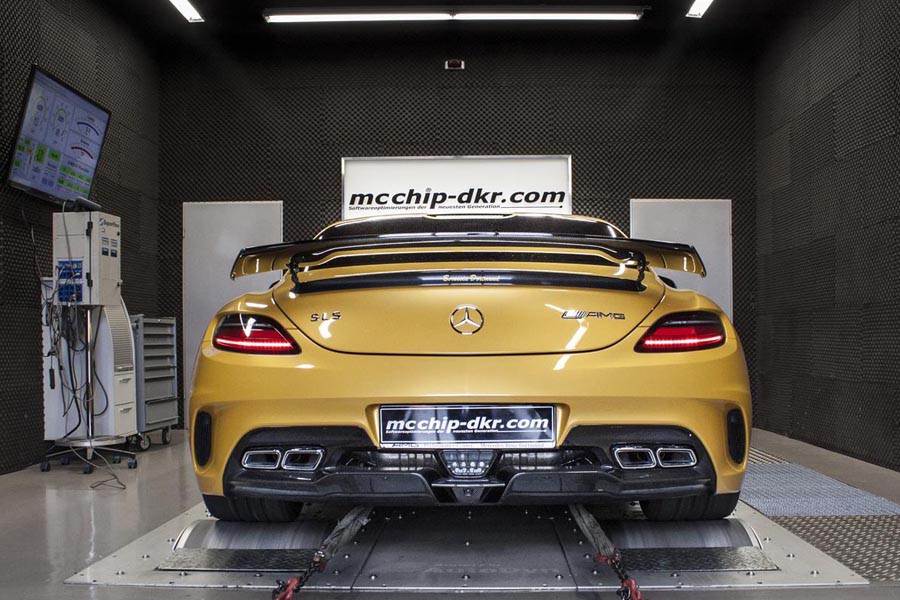 Για τους λίγους και τυχερούς κατόχους της Mercedes SLS AMG Black Series, τους οποίους δεν τους φτάνουν οι 631 ίπποι και τα 635 Nm ροπής του V8 ατμοσφαιρικού κινητήρα των 6,2 λίτρων και απαιτούν λίγο παραπάνω ισχύ χωρίς την προσθήκη turbo, η γερμανική εταιρία βελτιώσεων mcchip-dkr δίνει την λύση. Με τον επαναπρογραμματισμό της χαρτογράφησης του κινητήρα στο stage 1 η απόδοση ανεβαίνει στους 654 ίππους και στα 649 Nm ροπής, ενώ η εταιρεία ισχυρίζεται πως πέφτει και η κατανάλωση (από τα 13,7 λτ./100 χλμ. μεικτής).