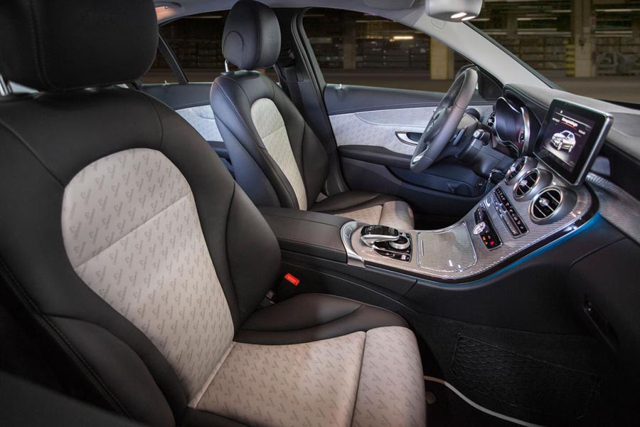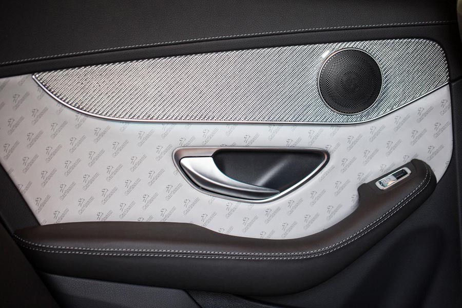 Στο εσωτερικό της νέας C-Class συναντάμε ξύλινες και ανθρακονημάτινες επενδύσεις που συνδυάζονται με το δέρμα ενώ νέα είναι τα βελούδινα πατάκια και τα αλουμινένια πεντάλ της Carlsson. Τις αλλαγές συμπληρώνουν τα φωτιζόμενα μασπιέ στις πόρτες της C-Class.