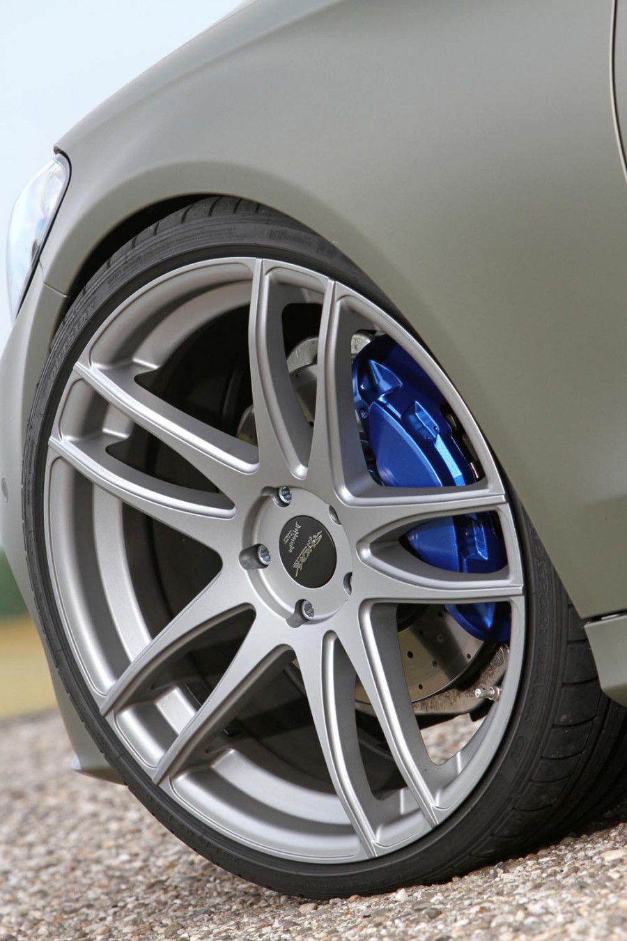 Αρχικά το χρώμα του αυτοκινήτου αλλάζει με την βοήθεια μεμβράνης σε ματ sandstone και είναι αυτό που βλέπετε στις φωτογραφίες, ενώ οι ήδη όμορφες ζάντες της AMG δίνουν την θέση τους σε νέες 20ιντσες ζάντες με ελαστικά Dunlop Sport Maxx διάστασης 235/30 R 20.
