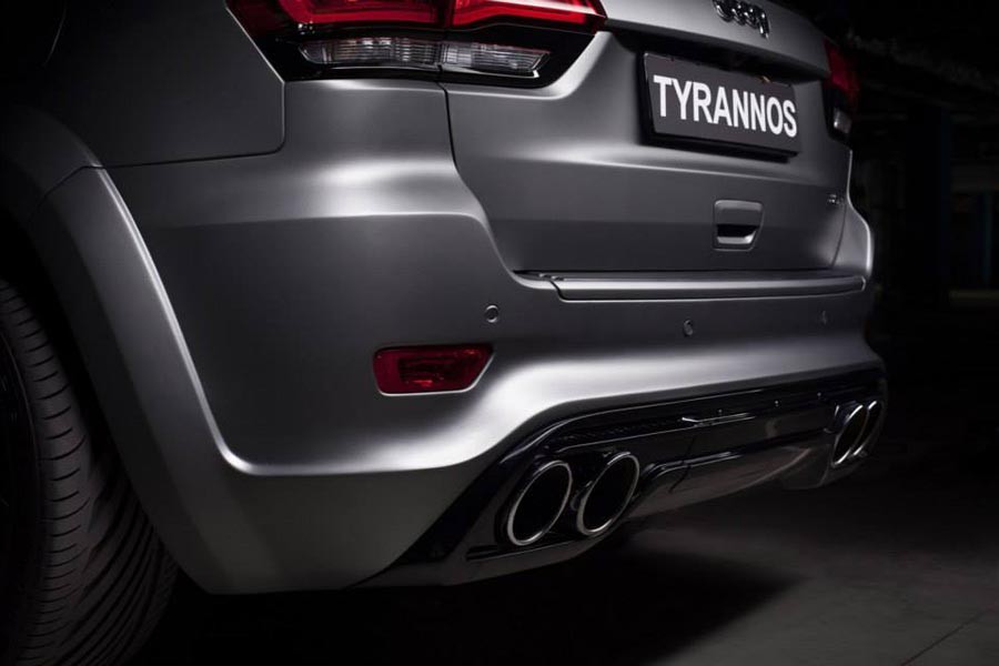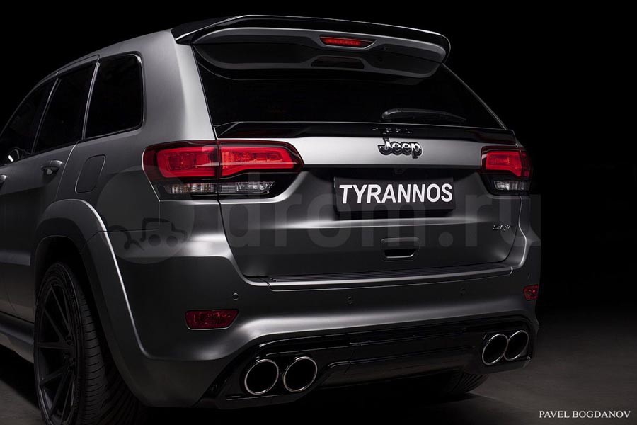 Η εταιρία βελτιώσεων αυτοκινήτων RTC παρουσιάζει το body kit με την ονομασία “Tyrannos” για το Jeep Grand Cherokee SRT8, χαρίζοντάς του ακόμα πιο μυώδη αλλά και εκκεντρική εμφάνιση. Το πακέτο περιλαμβάνει νέους προφυλακτήρες με μεγάλες εισαγωγές αέρα εμπρός και διαχύτη πίσω με δύο διπλέ στρογγυλές απολήξεις των εξατμίσεων, αεροτομή στην βάση του πίσω παρμπρίζ, νέες μαύρες ζάντες αλουμινίου, προσθήκες στα μασπιέ, νέα μάσκα, καπό με αεραγωγούς κ.α.
