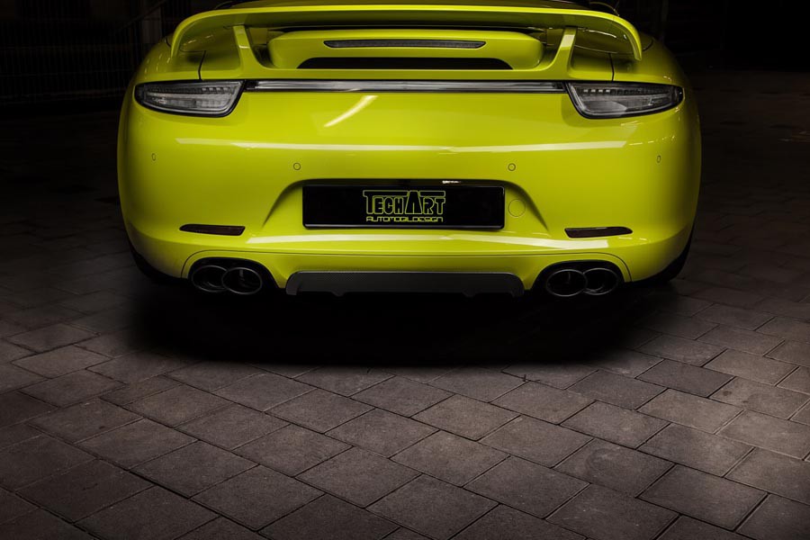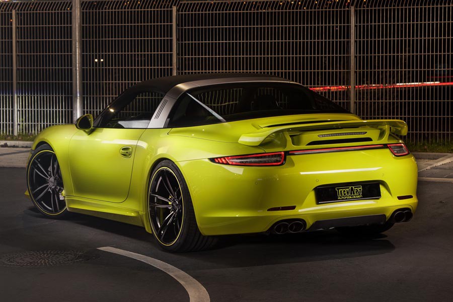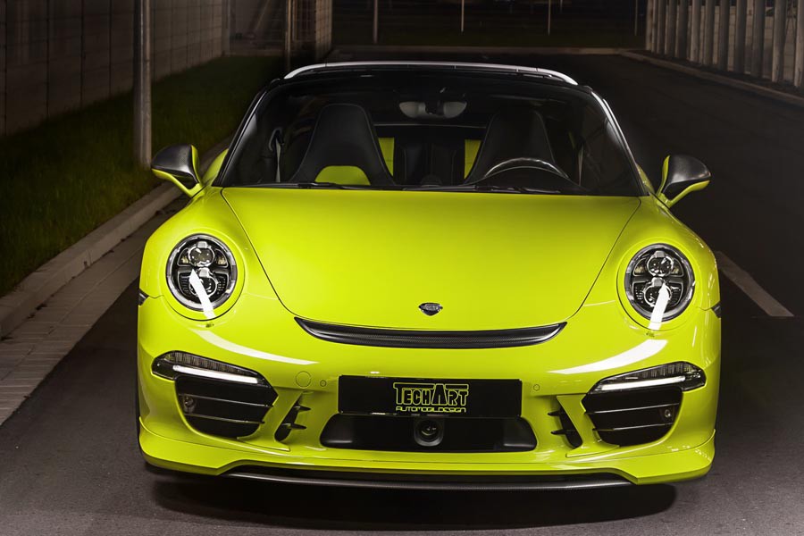 Η TechArt η οποία ειδικεύεται στις βελτιώσεις των Porsche, παρουσιάζει ένα ακόμα αναβαθμισμένο μοντέλο με βάση την 911 Targa 4, σε εκκεντρικό λεμονί χρώμα. Εξωτερικά η εντυπωσιακή 911 Targa 4 διακρίνεται επίσης από το αεροδυναμικό body kit από ανθρακόνημα και συνθετικά υλικά, όπως είναι το ένθετο στη μάσκα, το εμπρός σπόιλερ, η πίσω αεροτομή και διαχύτης, τα νέα καλύμματα των καθρεπτών και οι προσθήκες στα μασπιέ. Επίσης διατίθεται με διάφορα σχέδια ζαντών αλουμινίου διαμέτρου 20 και 21 ιντσών.