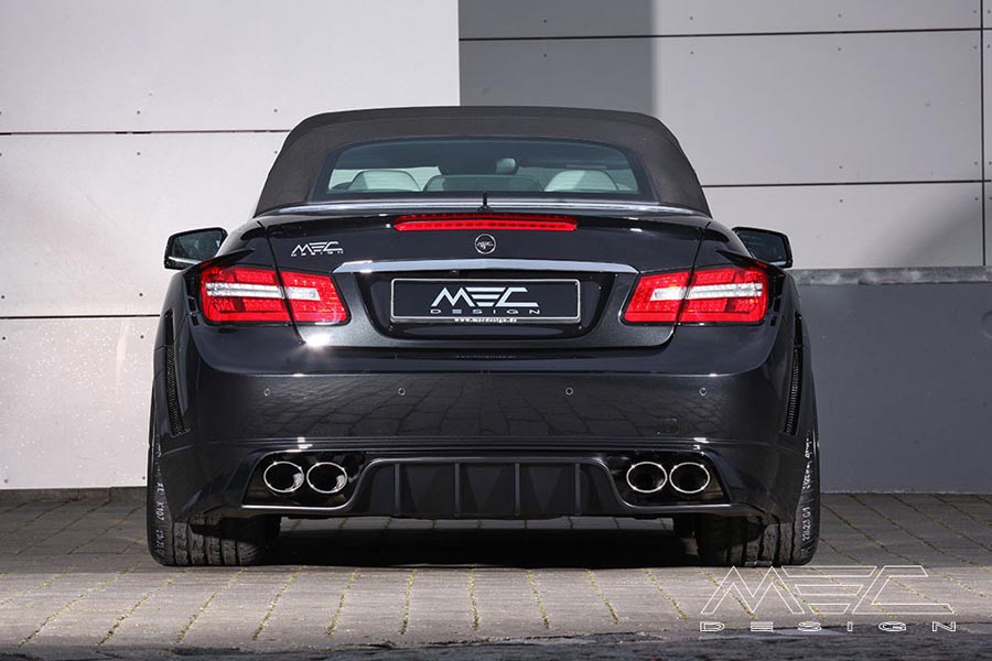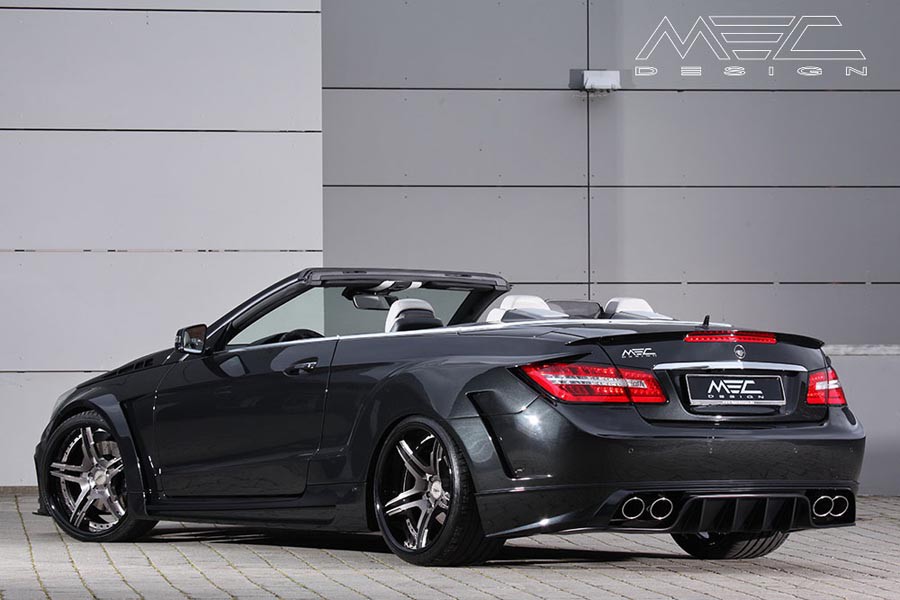 Η Γερμανική εταιρία βελτιώσεων MEC Design, η οποία ειδικεύεται στις αναβαθμίσεις των μοντέλων της Mercedes, παρουσιάζει ένα body kit για την προ ανανέωσης E-Class Coupe ή Cabriolet με πολύ μυώδη εξωτερική εμφάνιση. Η συγκεκριμένη E 500 Cabriolet περιλαμβάνει αλουμινένιες ζάντες 20 ιντσών με ελαστικά πλάτους 245 εμπρός και θηριώδη 325 πίσω με προσθήκες στα πίσω φτερά για να χωρέσουν. Επίσης, εφοδιάζεται με νέους προφυλακτήρες με μεγάλους αεραγωγούς, σπόιλερ και διαχύτη, στα μασπιέ έχουν τοποθετηθεί προσθήκες, στο τελείωμα του καπό έχει ενσωματωθεί μια διακριτική αεροτομή, ενώ έχει αντικατασταθεί και το καπό.