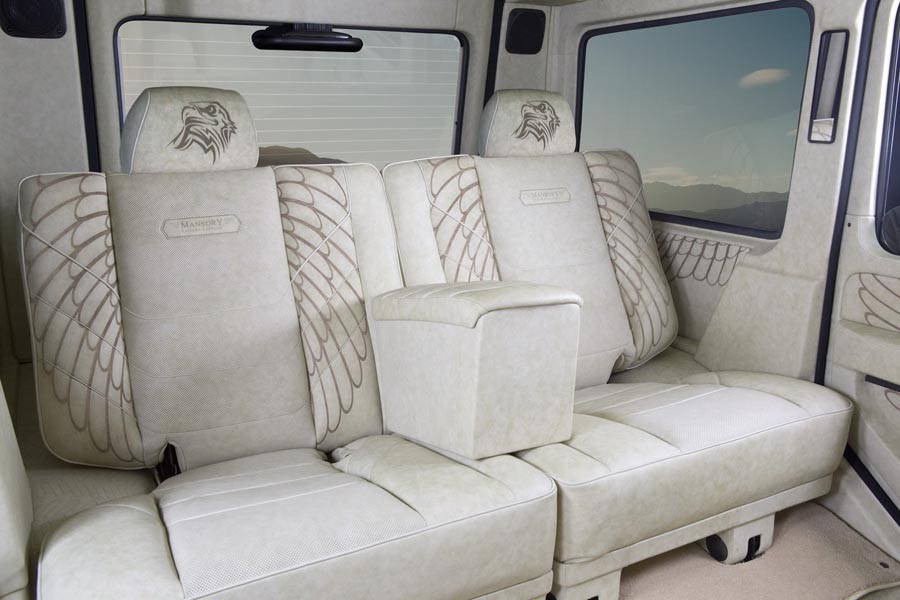 Πλήρως τροποποιημένο είναι και το εσωτερικό, όπου κάθε επιφάνεια έχει ντυθεί με ανοιχτόχρωμο δέρμα και αμφιβόλου αισθητικής σχέδια με φτερά και κεφάλι γερακιού. Άκομψη είναι και η προσθήκη στο πάνω μέρος του ταμπλό με την ενσωματωμένη οθόνη του συστήματος πολυμέσων. Αλκαντάρα υψηλής ποιότητας και ανθρακόνημα διακοσμούν επίσης το εσωτερικό.
