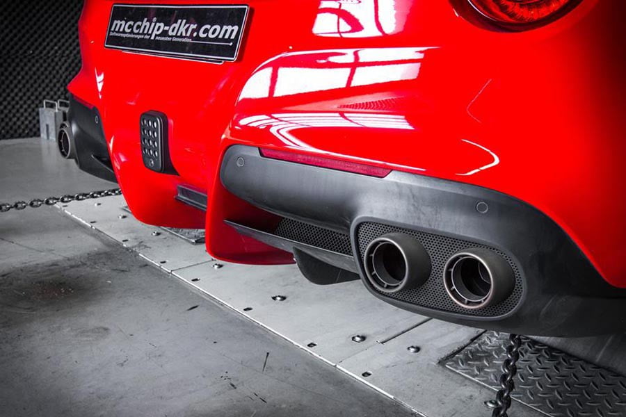 Η πληθωρική Ferrari f12berlinetta με τον ατμοσφαιρικό V12 κινητήρα των 6.262 κ.εκ., απόδοσης 740 ίππων στις 8.250 σ.α.λ. και 690 Nm ροπής στις 6.000 σ.α.λ., δέχεται μια μικρή «περιποίηση» από την εταιρεία βελτιώσεων mccchip-dkr. Μέσω της προσαρμογής νέου λογισμικού, η απόδοση μπορεί να ανέβει κατά 27 ίππους και 32 Nm ροπής, μέσα σε χρόνο περίπου 4-6 ωρών για την εγκατάσταση.