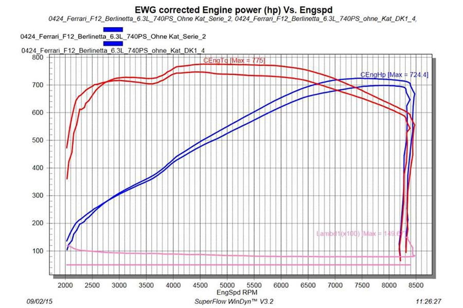 Έτσι η ισχύς θα αυξηθεί ελαφρώς στους 767 ίππους και 722 Nm ροπής, ενώ από το διάγραμμα της δυναμομέτρησης φαίνεται ότι οι καμπύλες της ισχύος και ροπής είναι ίδιες πριν και μετά την αναβάθμιση. Επιδόσεις δεν αναφέρονται, ωστόσο δεν θα έχει και μεγάλες διαφορές από πριν (0-100 χλμ./ώρα σε 3,1 δευτερόλεπτα και 340 χλμ./ώρα τελικής).
