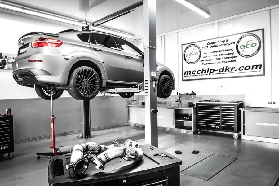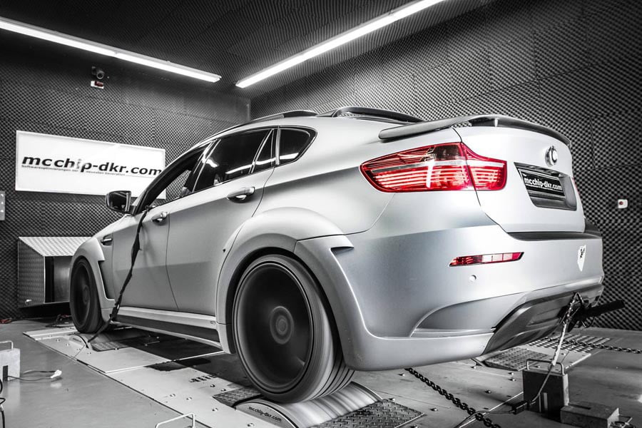 Αν πάλι οι κάτοχοί της, ή οι αγοραστές μιας μεταχειρισμένης BMW M6 αναζητούν ακόμα πιο υψηλή απόδοση, η εταιρεία βελτιώσεων mcchip-dkr αναβαθμίζει το ήδη δυνατό μοτέρ. Μέσω του κιτ Stage 3+ το οποίο περιλαμβάνει αναβάθμιση του λογισμικού, του turbo και την τοποθέτηση νέου συστήματος εξάτμισης, η ισχύς αυξάνεται κατά 205 ίππους και 354 Nm ροπής, φτάνοντας τους 760 PS και τα 1.034 Nm. Επιπλέον, η συγκεκριμένη M6 φέρει full body kit με προσθήκες στους προφυλακτήρες, φτερά, carbon καπό, ματ ασημί αμάξωμα, μεγάλης διαμέτρου ζάντες με πολύ φαρδιά ελαστικά και διάφορα αεροδυναμικά βοηθήματα.
