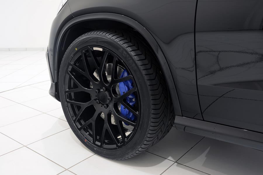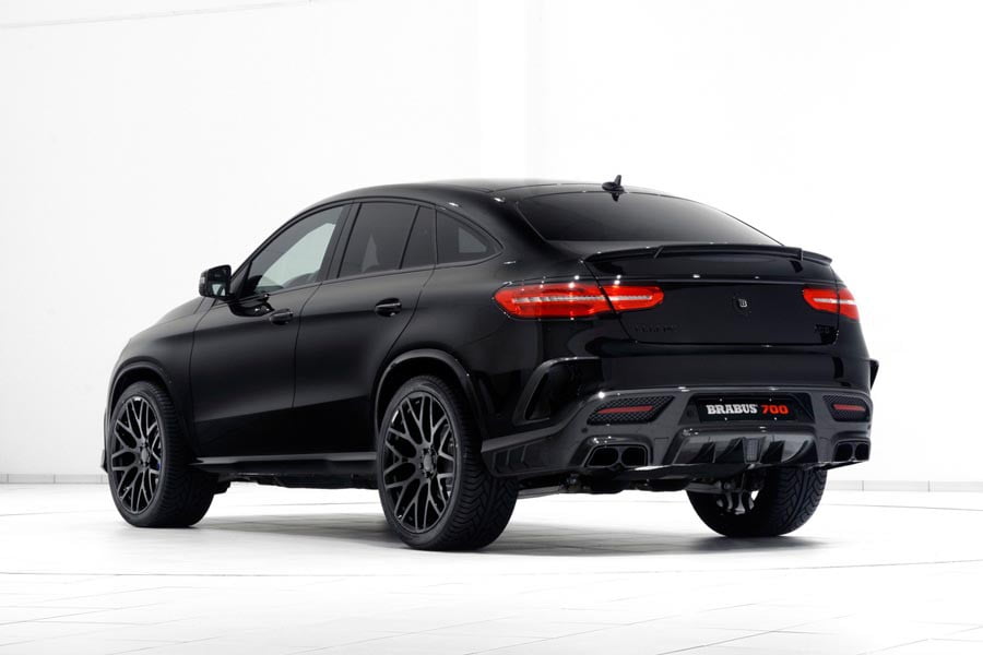 Στο μαύρο σατινέ αμάξωμα της GLE έχουν τοποθετηθεί διάφορα αεροδυναμικά βοηθήματα, μάσκα Brabus, επιπλέον φώτα LED στον προφυλακτήρα και τεράστιες σφυρήλατες ζάντες αλουμινίου διαμέτρου 23 ιντσών. Περνώντας στο εσωτερικό, υπάρχουν νέες δερμάτινες επενδύσεις μπλε χρώματος, αλουμινένια πεντάλ, φωτιζόμενα διακοσμητικά στα μασπιέ και δίχρωμα πατάκια.