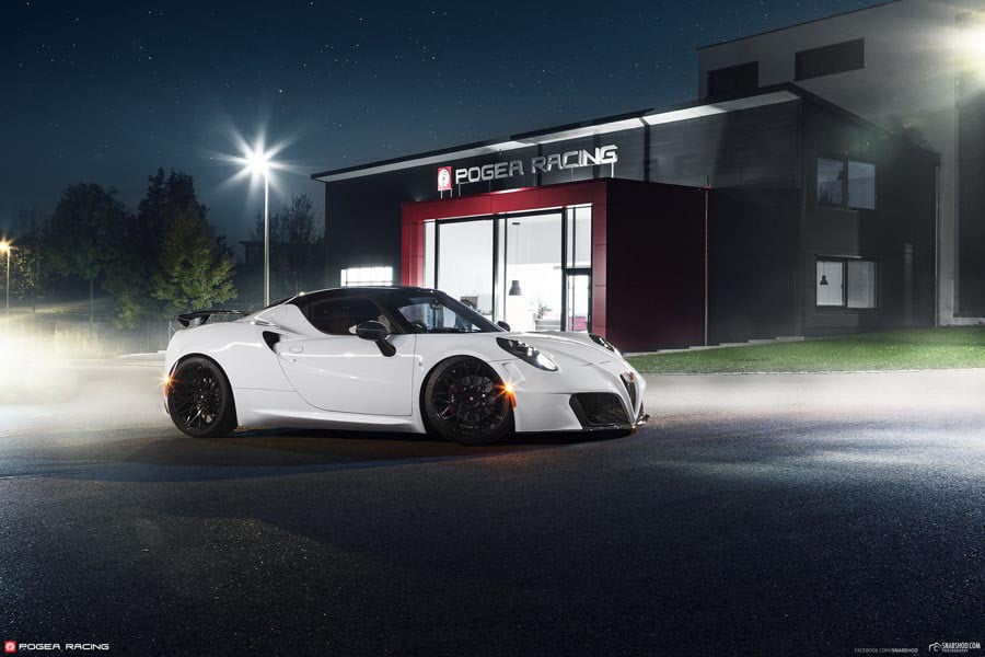 Η εντυπωσιακή και άκρως θελκτική Alfa Romeo 4C δέχεται τις αναβαθμίσεις της Pogea Racing και αποκτά υψηλότερη ισχύ και επιδόσεις, αντίστοιχες με ακριβότερων supercars. O 1.75 λτ. κινητήρας εργοστασιακής απόδοσης 240 ίππων και 350 Nm ροπής, αποδίδει μετά την αναβάθμιση 314 ίππους και 336 Nm ροπής, ισχύς που είναι υπεραρκετή για το ελαφρύ αμάξωμα των 895 κιλών.