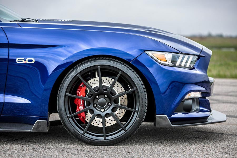 Κάτι ανάλογο ισχύει και για την πανίσχυρη Mustang HPE750, της οποίας ο V8 κινητήρας των 5.0 λτ. αποδίδει μετά από πολλές βελτιώσεις 750 ίππους και 879 Nm ροπής. Το κουπέ μυώδες μοντέλο εκτοξεύεται στα 0-60 μ.α.ω. (0-96 χλμ./ώρα) σε μόλις 3,4 δευτερόλεπτα και η τελική του ταχύτητα φτάνει τα 335 χλμ./ώρα.