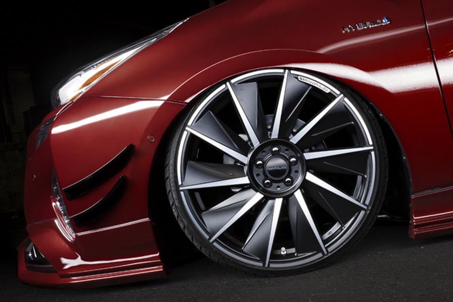 Το όλο πακέτο συμπληρώνουν οι μεγάλης διαμέτρου ζάντες των 20 ιντσών σε σχέδιο φτερωτής και η πάρα πολύ χαμηλωμένη ανάρτηση, με τους τροχούς να ξυρίζουν τους θόλους και το αυτοκίνητο να βρίσκεται μόλις μερικά δάκτυλα από το έδαφος. Επίσης, η Wald προσφέρει ενισχυμένα φρένα με 6πίστονες δαγκάνες εμπρός αξίας 324.000 γιεν (2.630 ευρώ) ή 4 πίστονες με 205.200 γιεν (1.665 ευρώ).