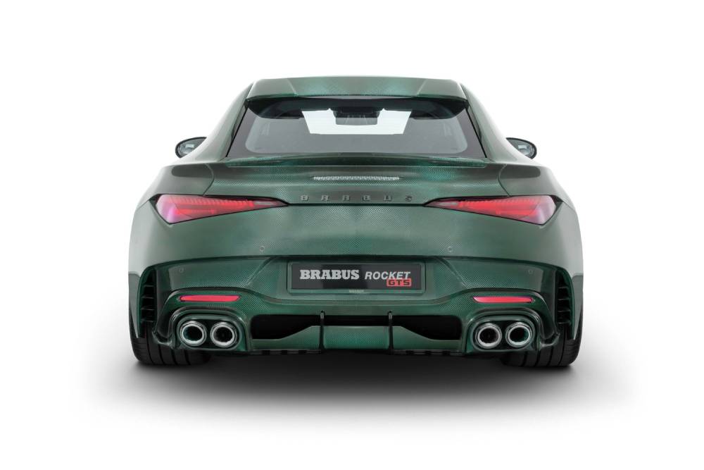 Η Brabus Rocket GTS βασίζεται στην plug-in υβριδική SL 63 S E Performance, αλλά κάπου εκεί τελειώνουν οι ομοιότητες. Η Rocket GTS καταρχάς ντύνεται εξ ολοκλήρου στα ανθρακονήματα εξωτερικά, με το χρώμα Mean Green να καλύπτει τα carbon πάνελ προαιρετικά, ενώ πίσω συναντάμε τη μεγαλύτερη (κυριολεκτικά και μεταφορικά) αλλαγή. Η υφασμάτινη αναδιπλούμενη οροφή της εργοστασιακή SL έχει δώσει τη θέση της σε μια νέα σταθερή (εννοείται carbon), η οποία σε συνδυασμό με τα ανασχεδιασμένα μετόπισθεν μετατρέπουν το γερμανικό roadster σε shooting brake. Μια εκτέλεση που έχουμε να δούμε από τη BMW M Coupe, προσφέροντας μια ατελείωτη «γλουτιαία» περιοχή 1,98 μέτρων!